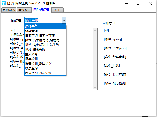 自定义大部分功能的回复语。右侧有各个功能下的可用变量提示