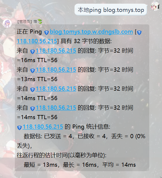2.增加一个ping接口,切换命令【切换接口】,原接口恢复后会在群内通知