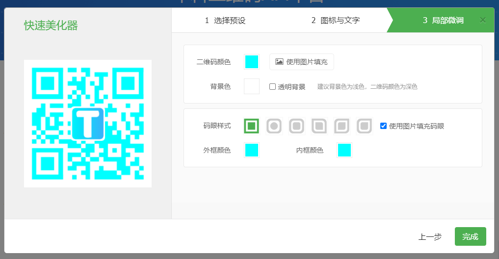 弹出美化工具,根据你的喜好完成美化后点击 完成 (需要登陆)