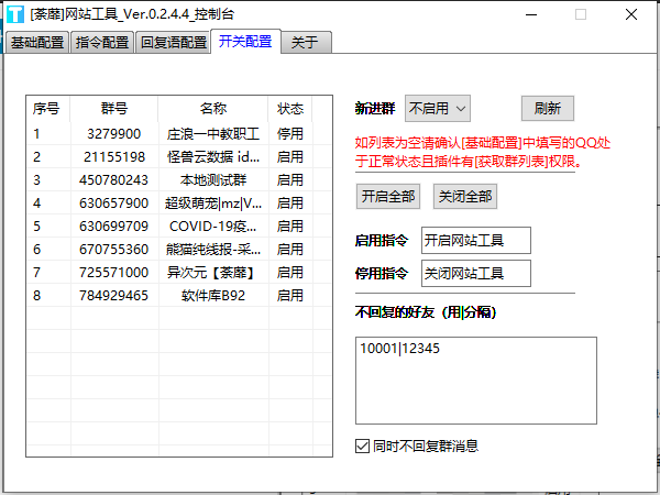 (目前仅小栗子支持)在此处配置机器人分群的启用与停用,以及屏蔽的好友